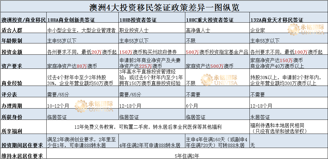 一圖秒懂澳洲4大主流投資移民方式差異,哪個(gè)更適合你?