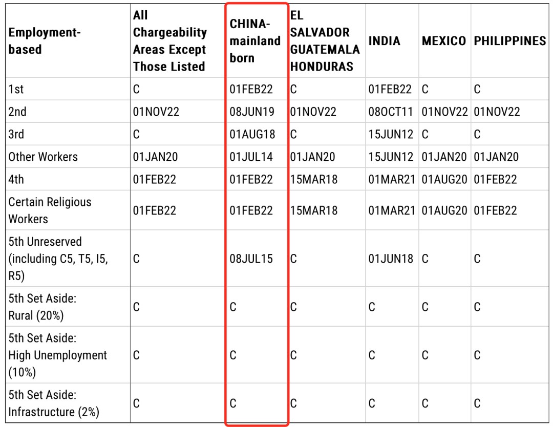 美國時(shí)間2023年2月14日,美國國務(wù)院簽證辦公室公布2023年3月份的簽證公告: EB-5非簽證預(yù)留項(xiàng)目表A前進(jìn)108天,到2015年7月8日。這是EB5非簽證預(yù)留項(xiàng)目停滯5個(gè)月后,首次排期前進(jìn)。