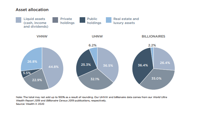 那么,這些超級富豪的資產配置比例是怎樣的呢?我們一起來看看Wealth-X的2020最新報告。