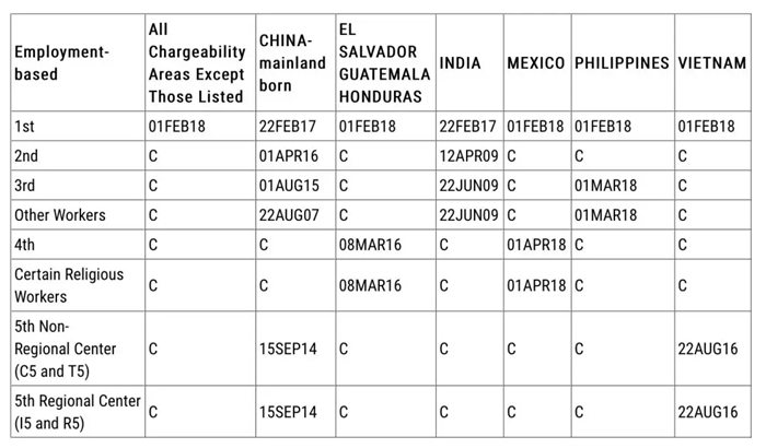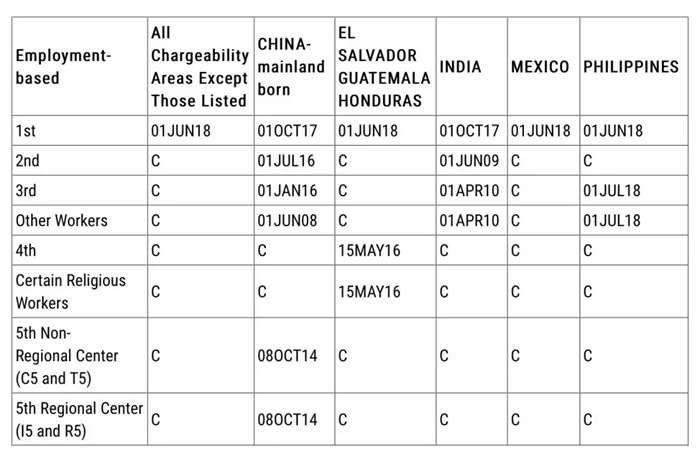 其中,EB-5排期,表A前進(jìn)一周,表B前進(jìn)到10月8日。EB-1排期未動,EB-2前進(jìn)3個月,EB-3前進(jìn)3周。