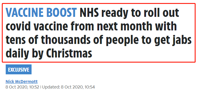 據悉,英國率先接種的是牛津大學和阿斯利康研發的疫苗(簡稱“牛津疫苗”),該疫苗共需接種2次,間隔28天。由于疫苗的性質原因,18歲以下(不含18歲)的人均不接種疫苗。如果一切順利,英國很有可能在圣誕節前實現疫苗的大規模接種。