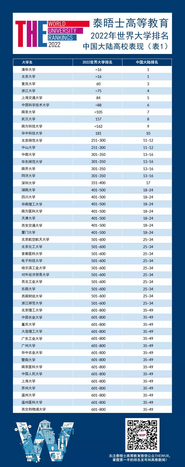 歷史新高!2022 THE世界大學(xué)排名發(fā)布!清北并列亞洲第一!