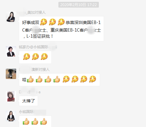 重慶貴賓客戶L女士美國EB-1C項目L-1簽證獲批