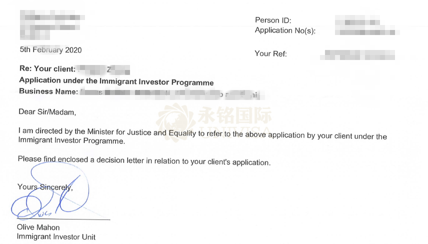 上海貴賓客戶Z先生一家獲批愛爾蘭最終批復函